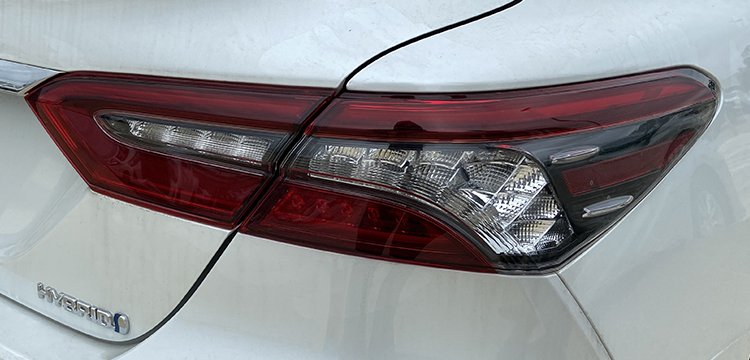 Phần đuôi xe nổi bật với cụm đèn hậu LED cải tiến được thiết kế góc cạnh, khỏe khoắn giúp tăng thêm tính thể thao, mạnh mẽ. Nối liền cụm đèn hậu là thanh nẹp chrome có khắc chữ Camry giúp tăng độ nhận diện. Cánh gió liền trên nắp cốp đem lại vẻ thể thao và năng động cho mẫu sedan hạng D của Toyota. Ngoài đèn hậu thì tổng thể phía sau đuôi xe không có gì thay đổi so với trước.